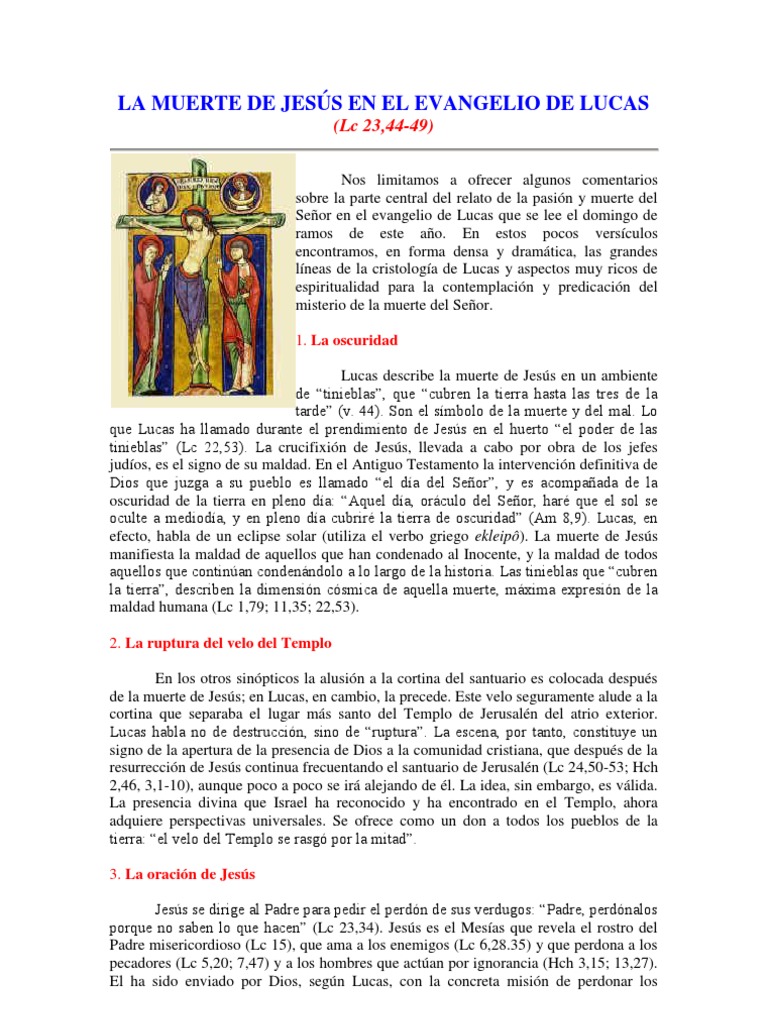 LA MUERTE DE JESÚS EN EL EVANGELIO DE LUCAS | Crucifixión ... from imgv2-1-f.scribdassets.com Su padre y su abuelo lo fueron y su vocación policíaca es de siempre. Testimonio de félix, encargado del edificio en el abasto donde vivió luca prodan, revista el abasto, n° 94, diciembre de 2007. Mateo y lucas proveen versiones bastante diferentes acerca de la muerte de judas. Algunos autores sostienen que habría predicado en macedonia, acaya y galacia y que supuestamente falleció en beocia. La muerte de lucas alamán. Y la cortina del santuario del templo se rasgó en dos. Lo que lucas ha llamado durante el prendimiento de jesús en el huerto el poder de las tinieblas (lc 22,53). Como sabemos, tenemos cuatro evangelios, cada uno con su propia visión de la pasión y la muerte de jesús.